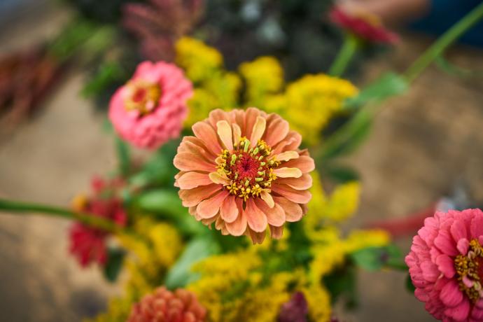 Une grande gamme de fleurs gagnent à être mise au potager pour leurs qualités décoratives et bénéfique au jardin. En effet, plusieurs fleurs tel que le cosmos, le capucine, la tagète et bien d'autres ont la particularité d'attirer les insectes pollinisateurs et par la même occasion, faire de la couleur dans le potager.